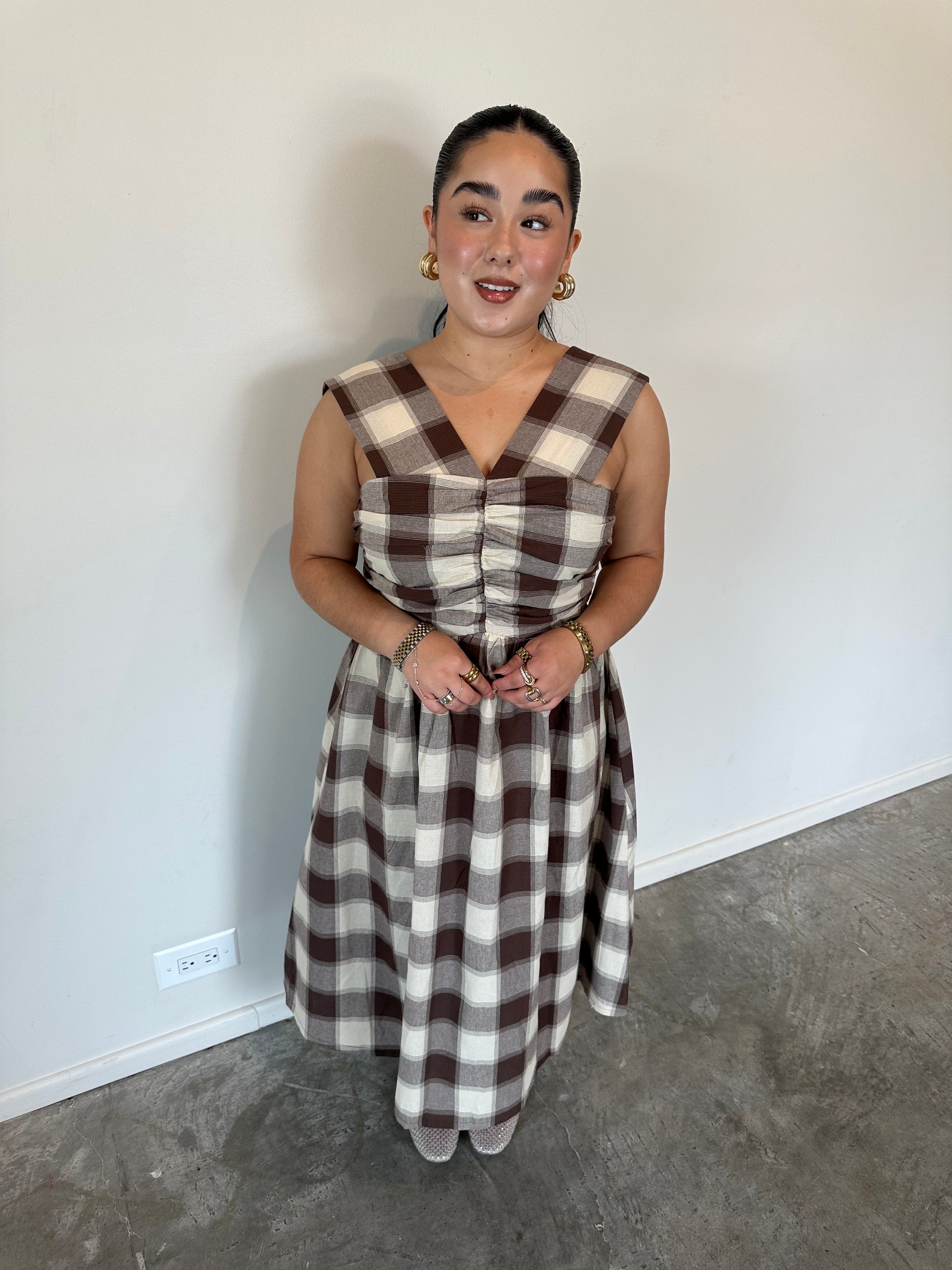 BROWN CHECKERED DRESS